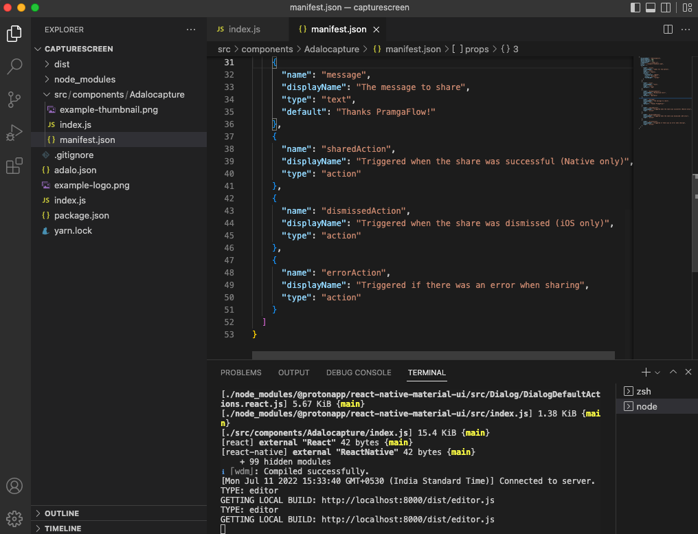 here i provided the screenshot of vs code terminal which was showing successfully complied.
