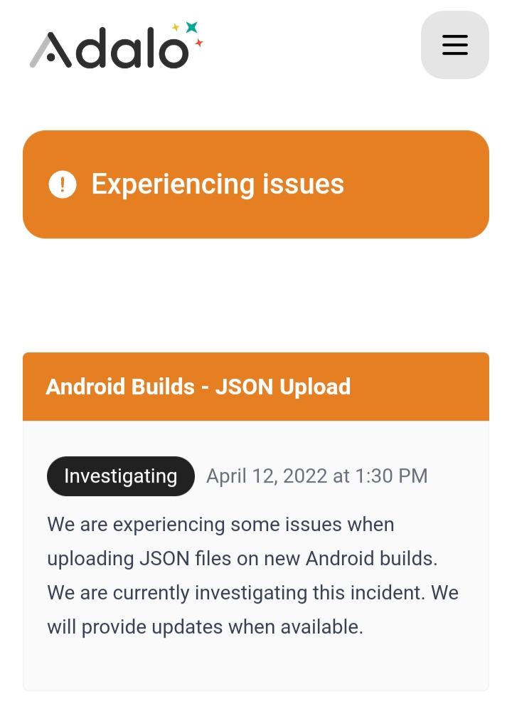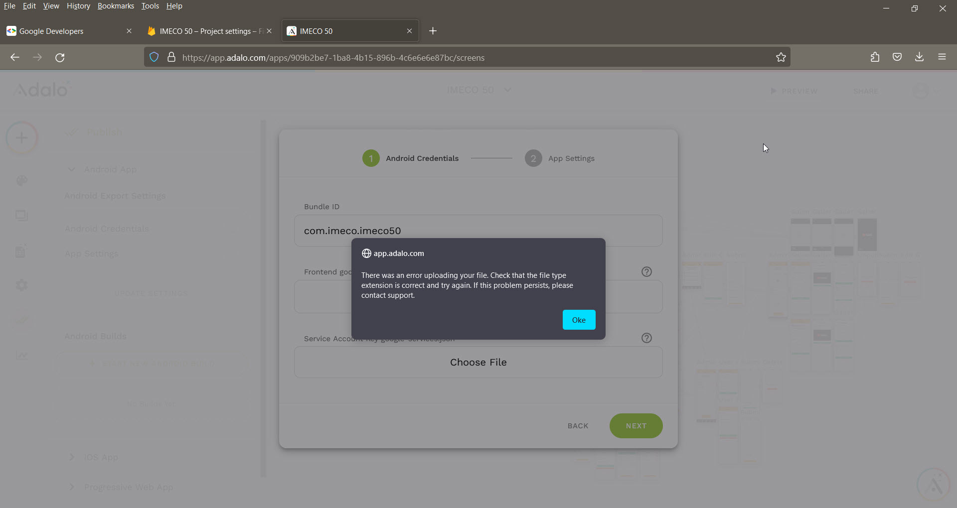 I saw that there is a issue with uploading JSON files in the Adalo status page. I think that could be the problem.