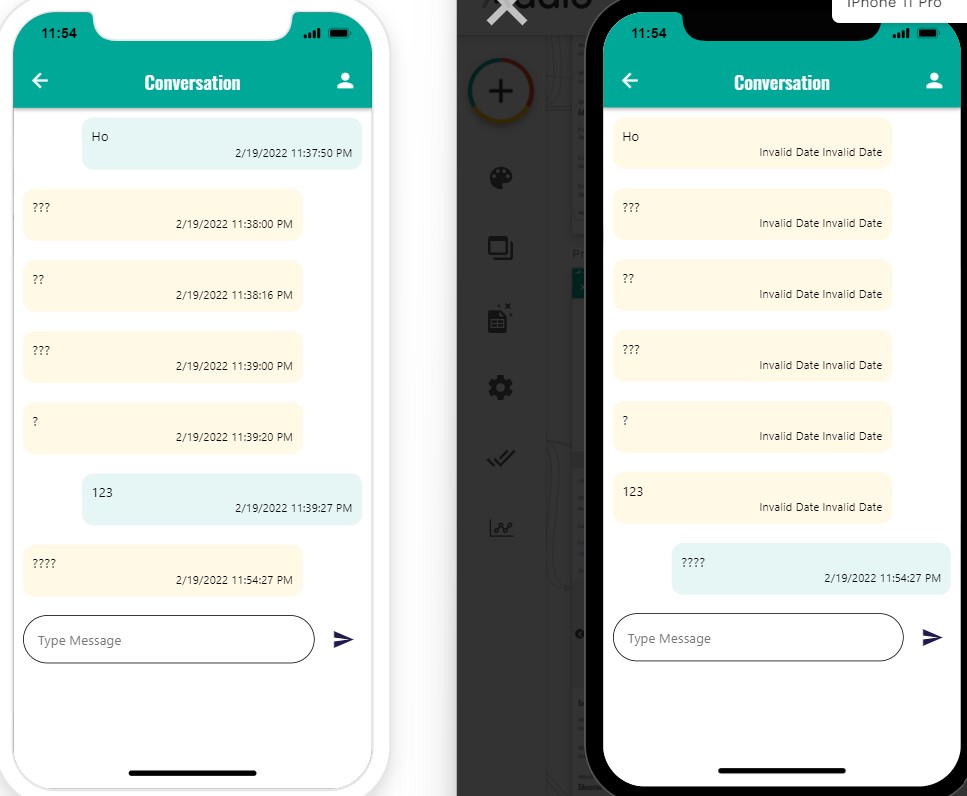 The database collections required for this component are updating fine, and during the chat, messages are displayed correctly. But when opening the chat again everything is displayed in the wrong way.