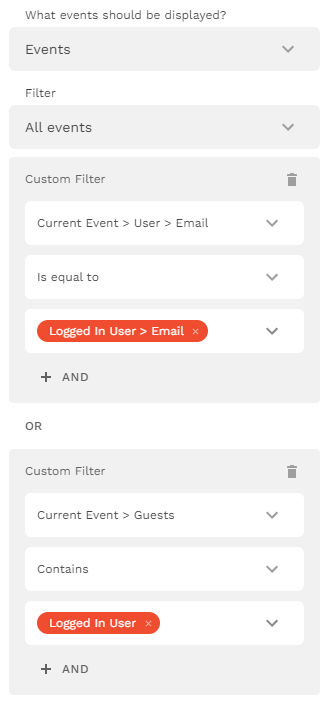Then, you only need “Logged in user > Guest Events” as the primary filter for your events list. No custom filters required.
