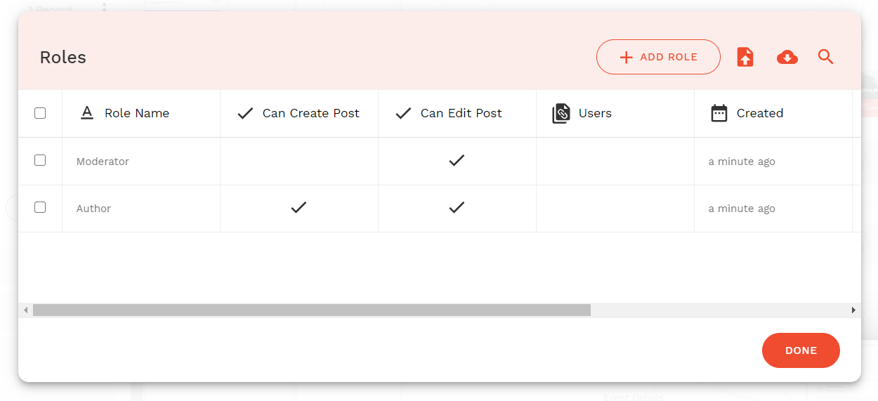 Or you can create a Roles table, so that a “Role” has the following permissions “can create”, “can edit object” etc.